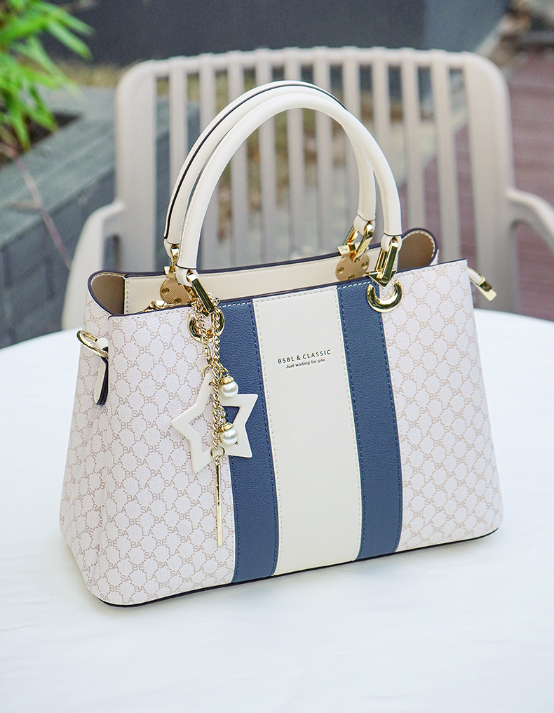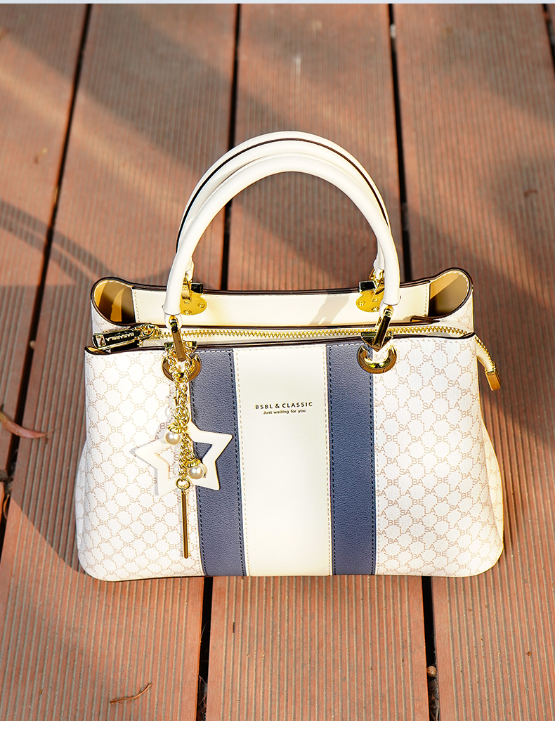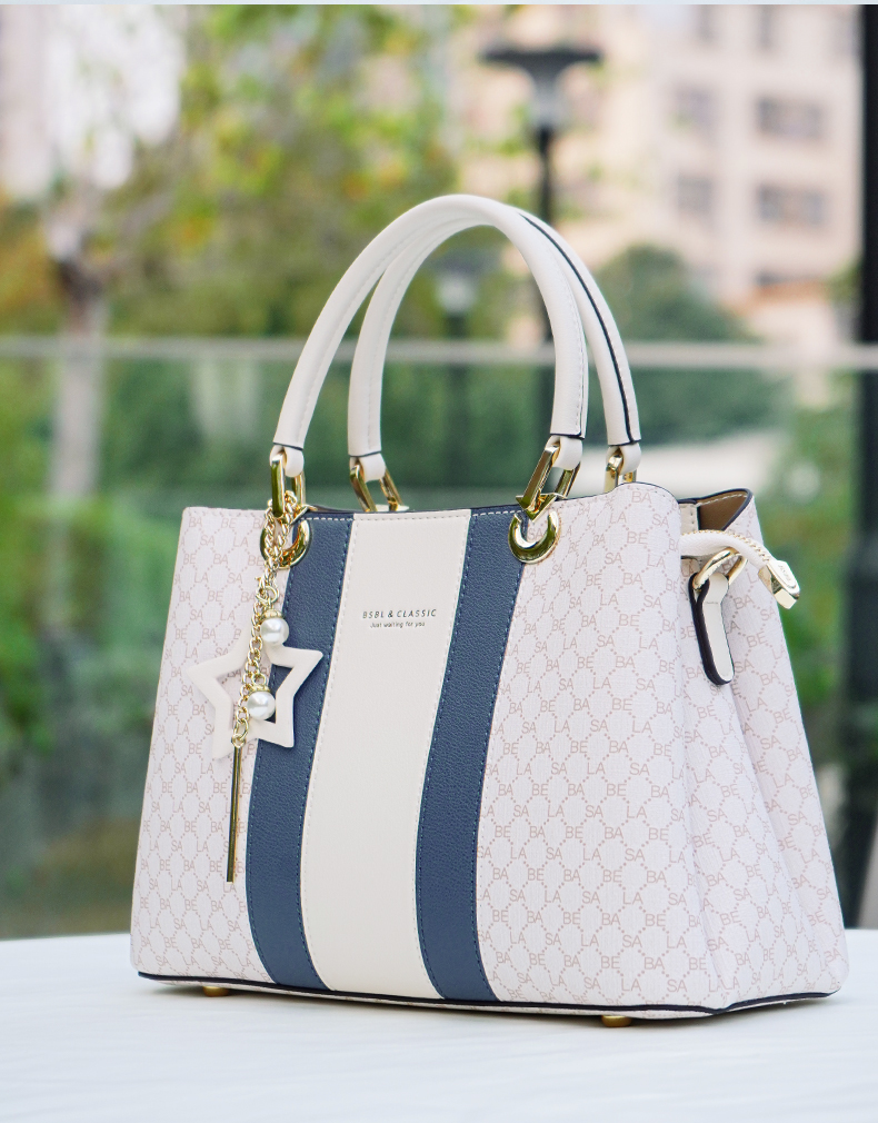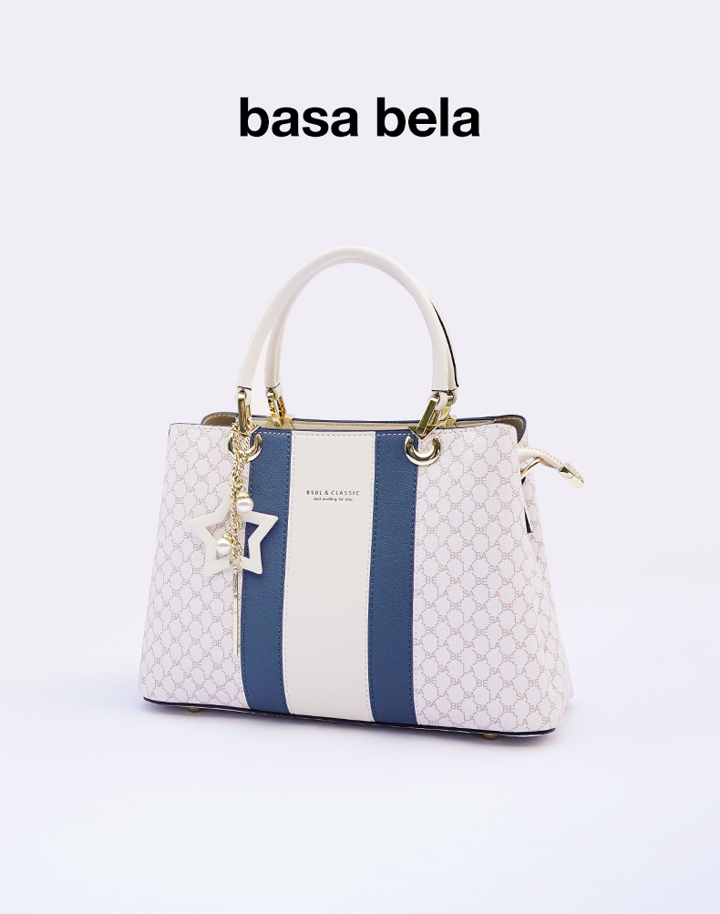 Basa Bela Top Handle Handbag – Designer Vibes Blue & White Tote with Star Charm | Everyday Chic Shoulder Bag for Work/Date Nights | Spacious Structured Purse