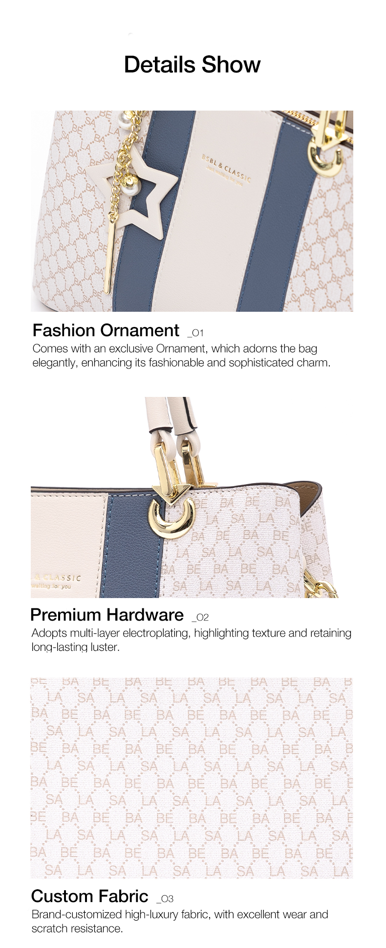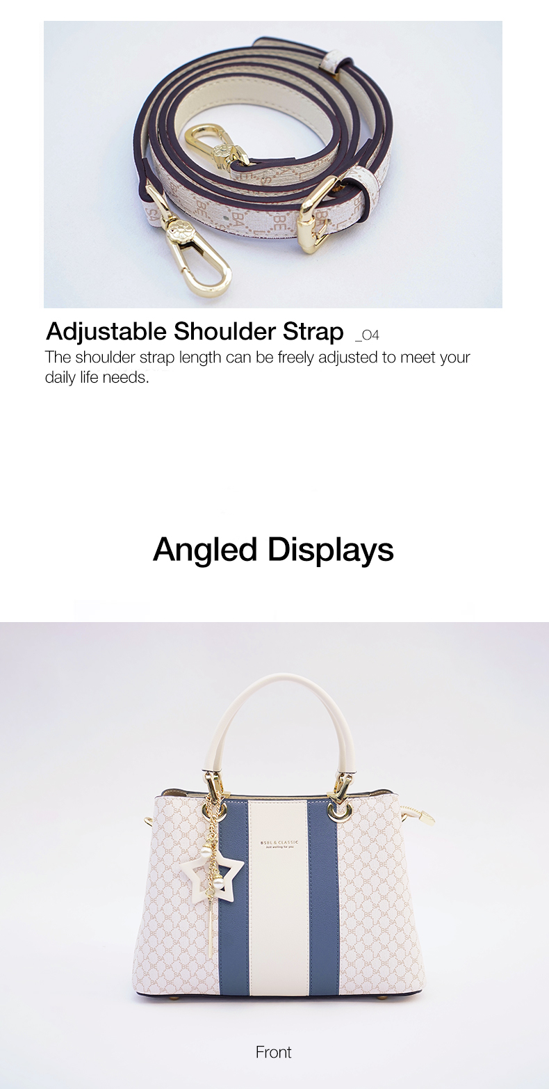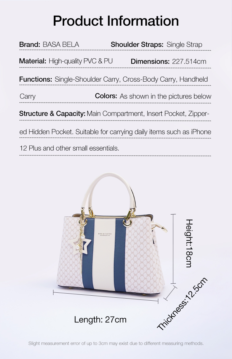 Basa Bela Top Handle Handbag – Designer Vibes Blue & White Tote with Star Charm | Everyday Chic Shoulder Bag for Work/Date Nights | Spacious Structured Purse