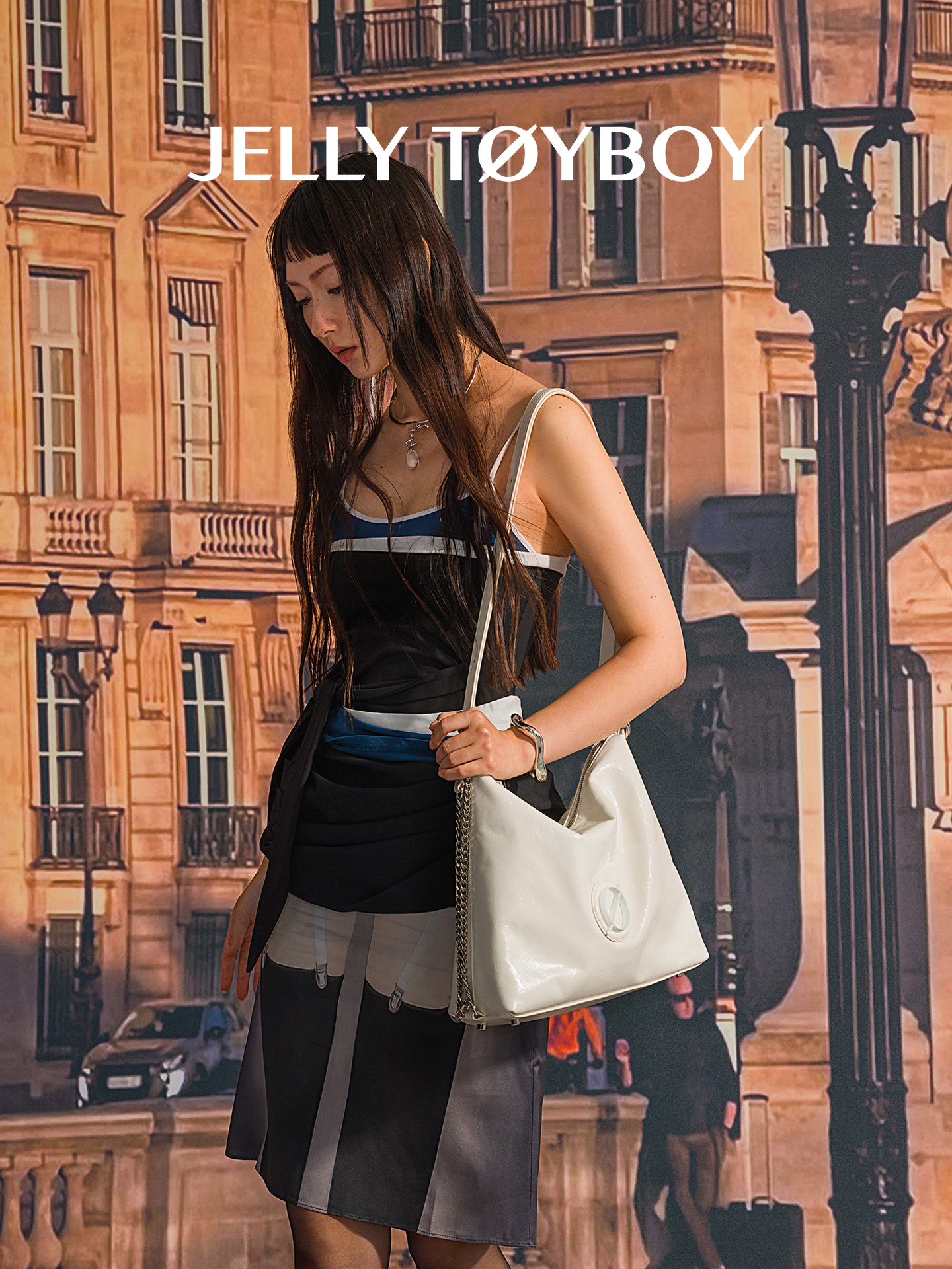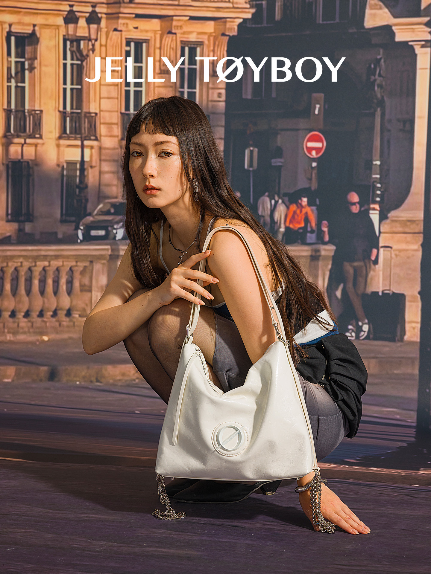 A futuristic compact shoulder bag from the Null Set Series. Sculpted folds, orbital emblem, and convertible style — designed to roam the city with style.