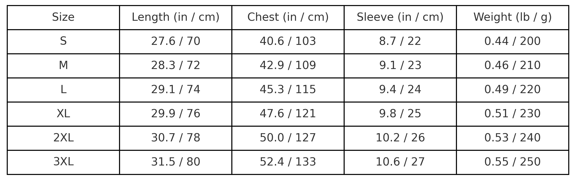 Men's Short Sleeve Size Chart