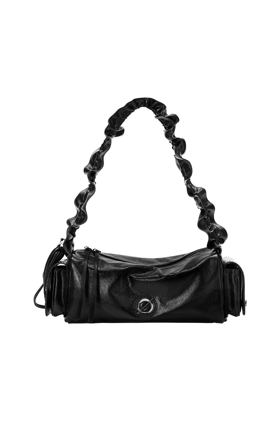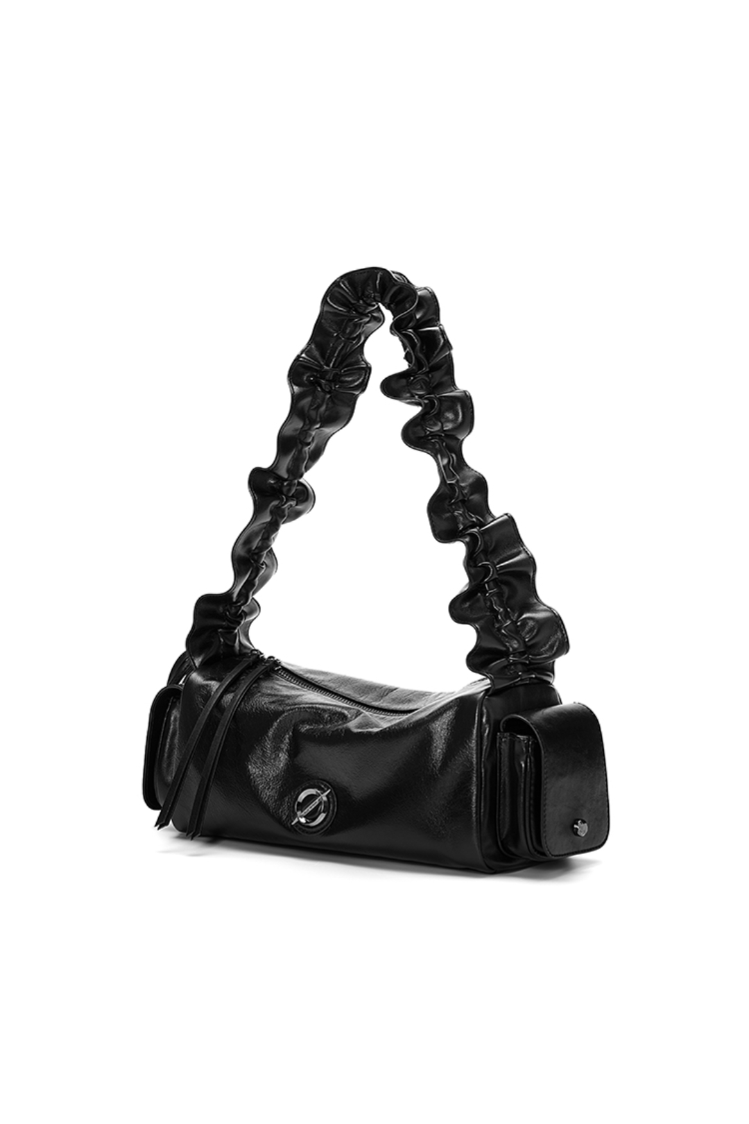 Bold and pillowy in all the right ways — a ruched-strap barrel bag that redefines volume with attitude.