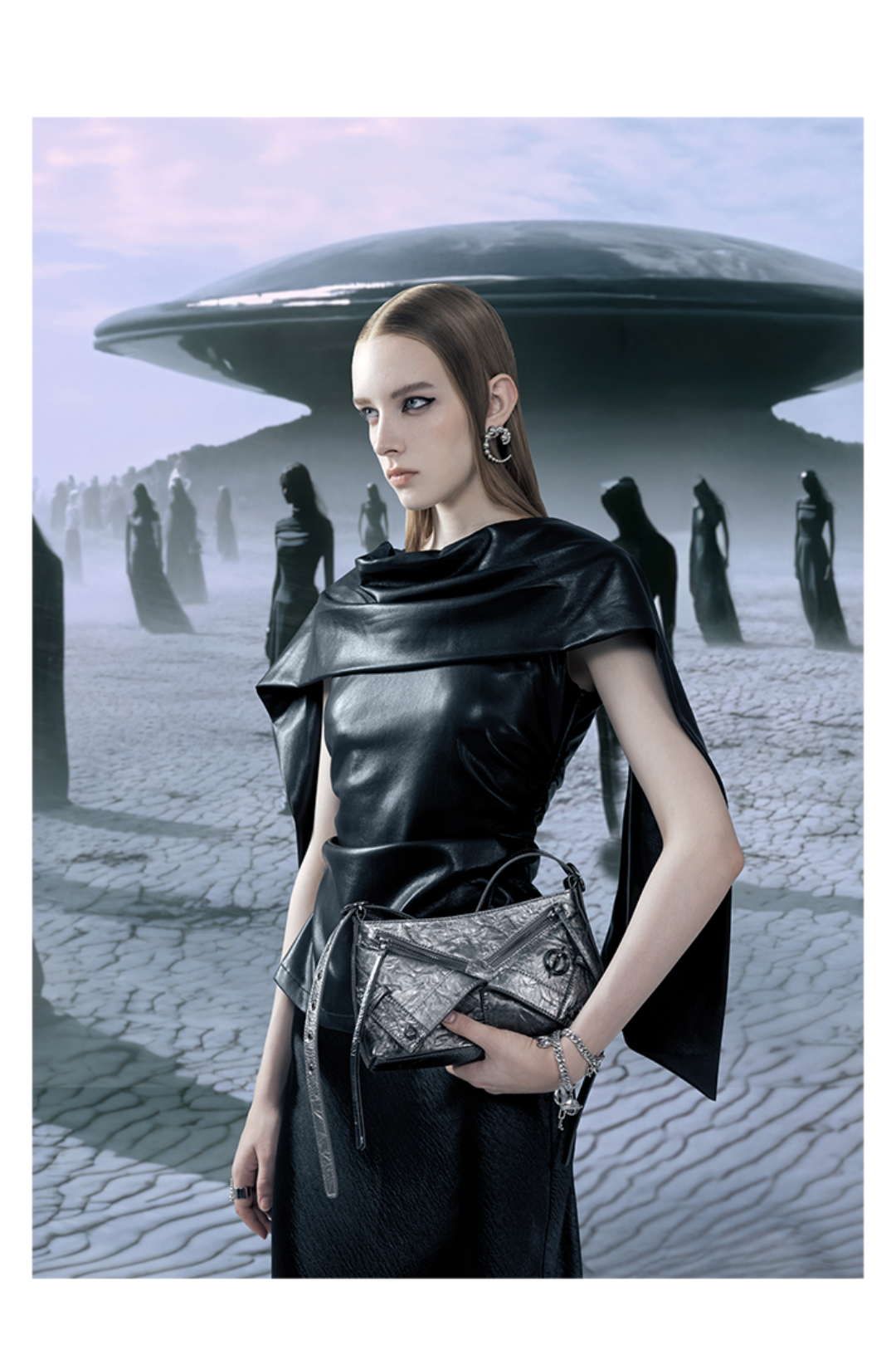 Edgy, angular, and unapologetically cool — this metallic mini slices through the ord